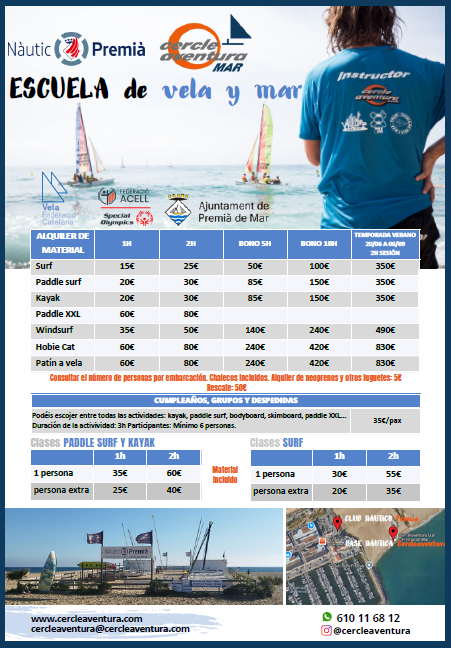 Ya sea a Hobbie Cat o patín a vela, en nuestra Escuela de Vela y Mar todos los alumnos acaban sabiendo navegar por sí solos con control y seguridad.